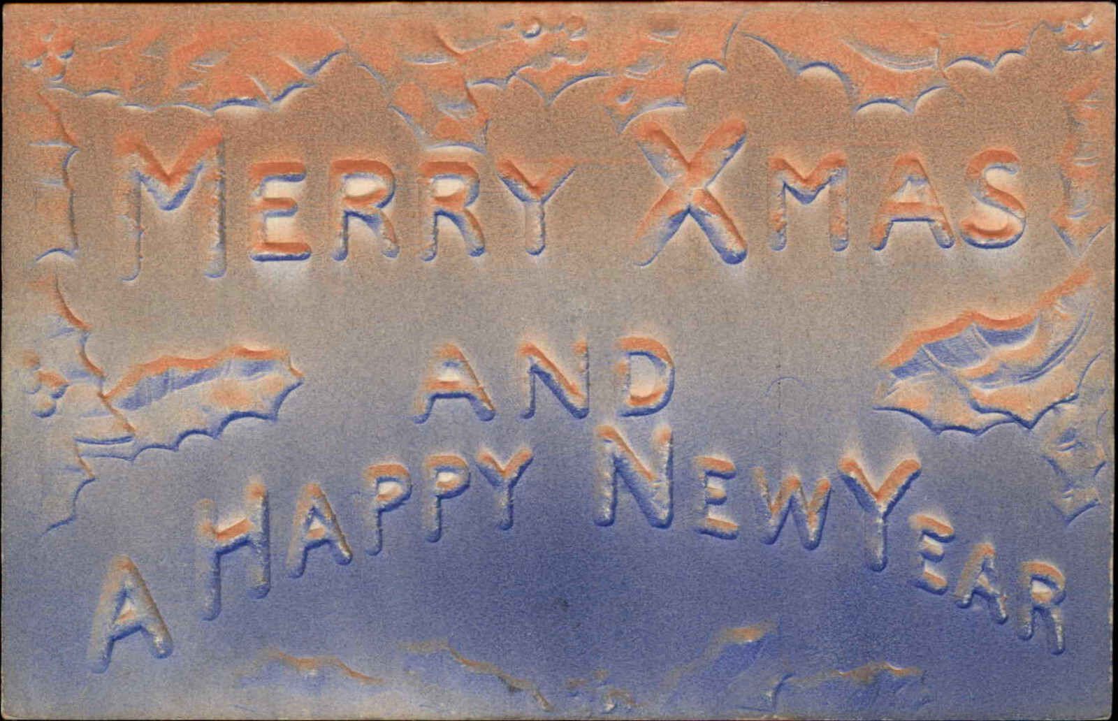 Christmas Holly Embossed Airbrushed c1900s-20s Postcard