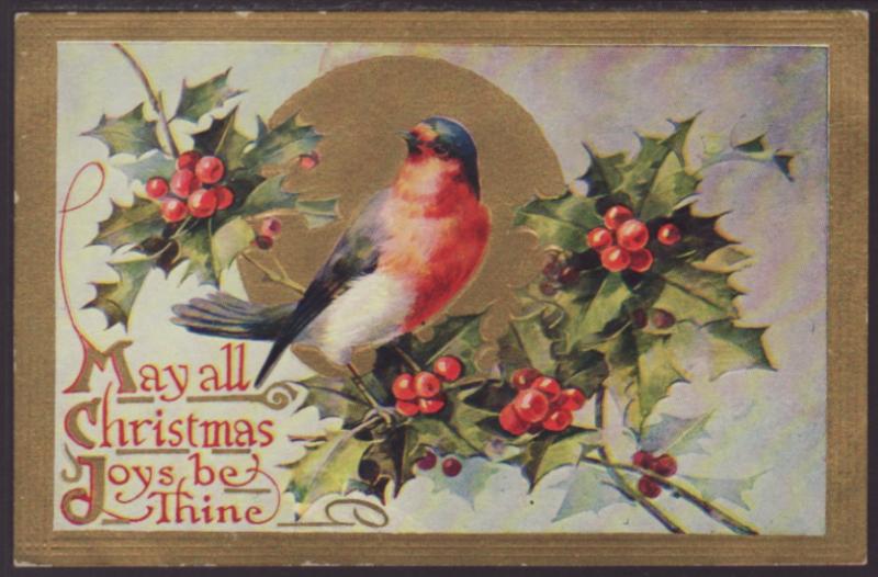 Christmas Joys,Robin,Holly Postcard