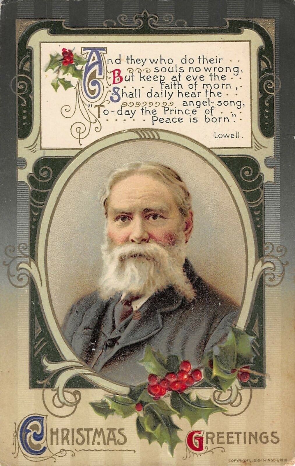 christmas poem by Lowell Winch postcard c1910 ac144