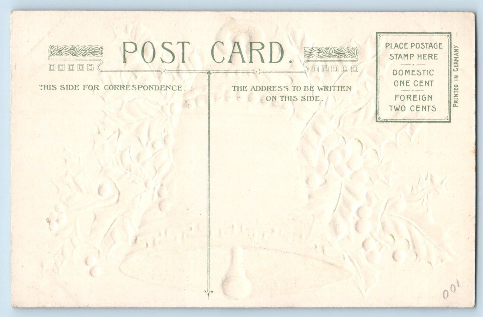 Christmas Postcard Giant Ringing Bell Holly Berries Winsch Back Embossed c1910's