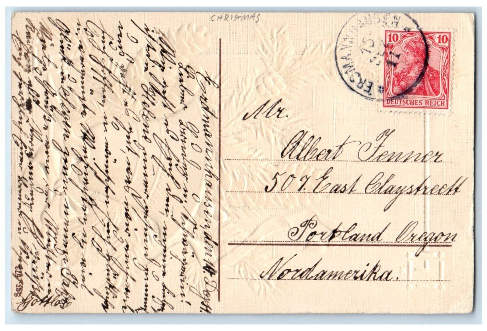 Christmas Postcard Ringing Bell Pinecone Embossed c1910's Posted Antique