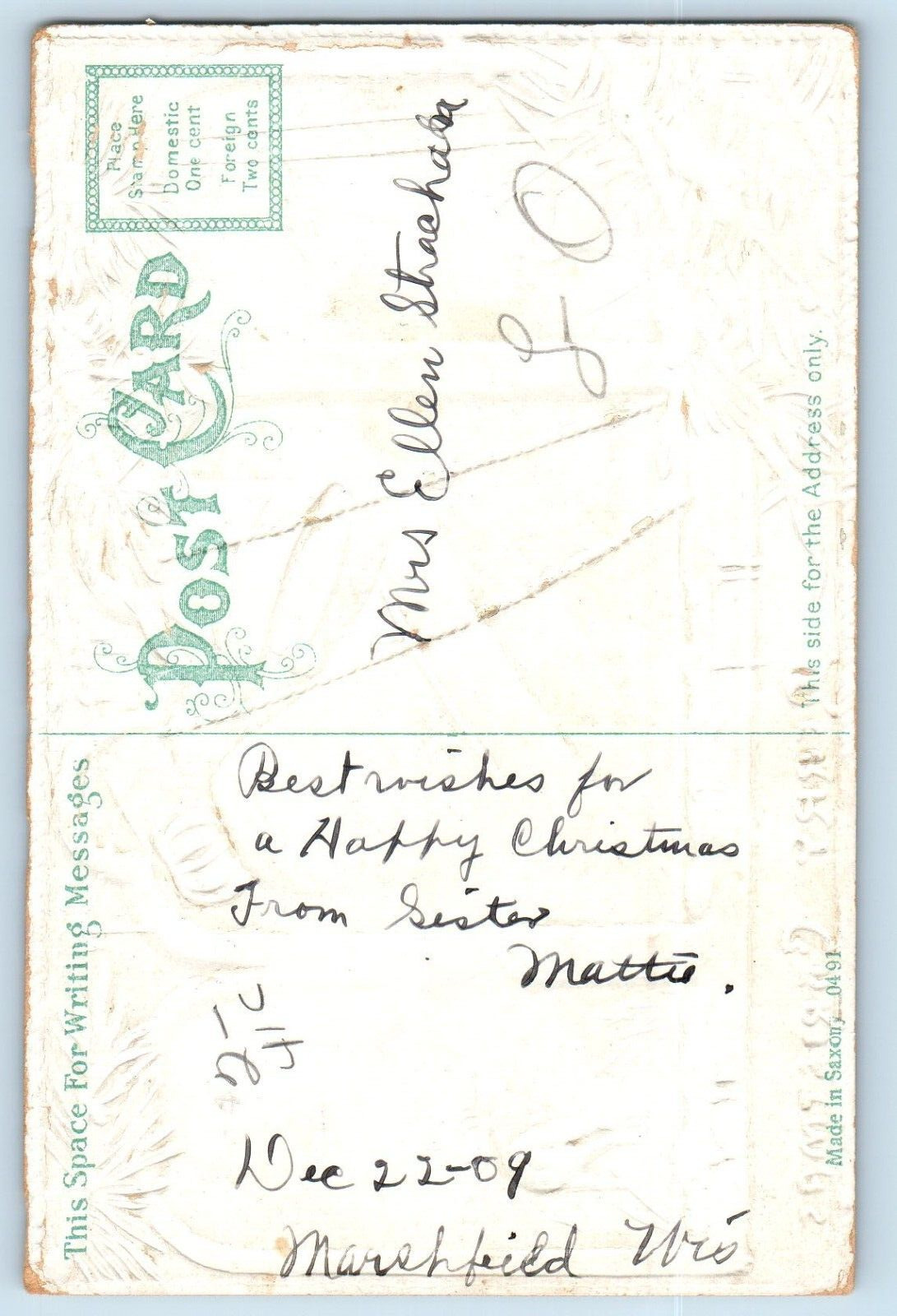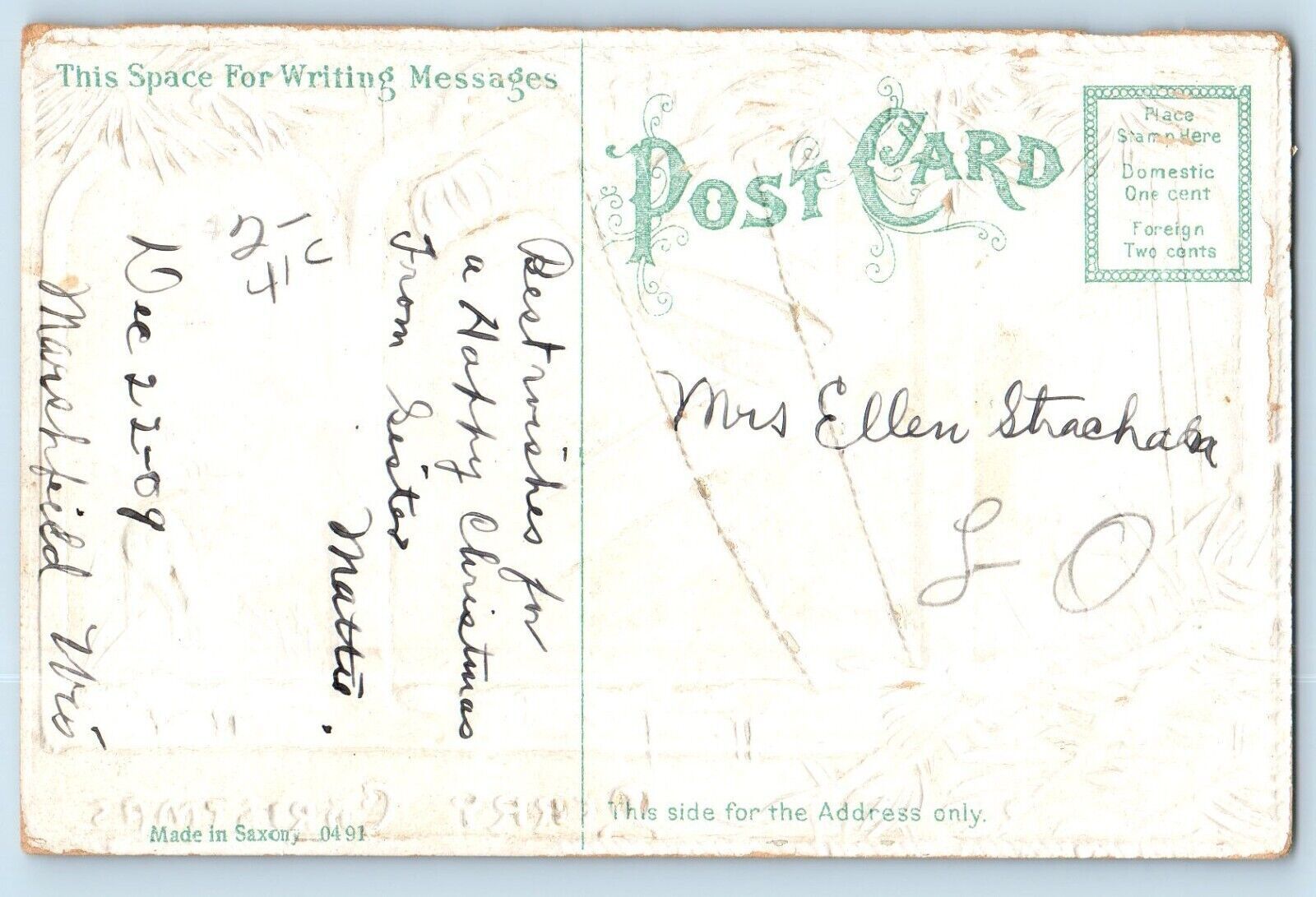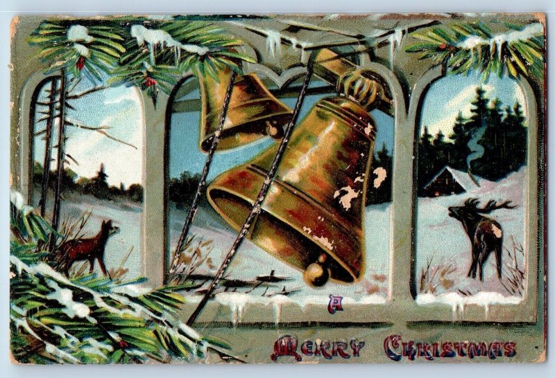 Christmas Postcard Ringing Bells Deer Winter Scene Embossed c1910's Antique
