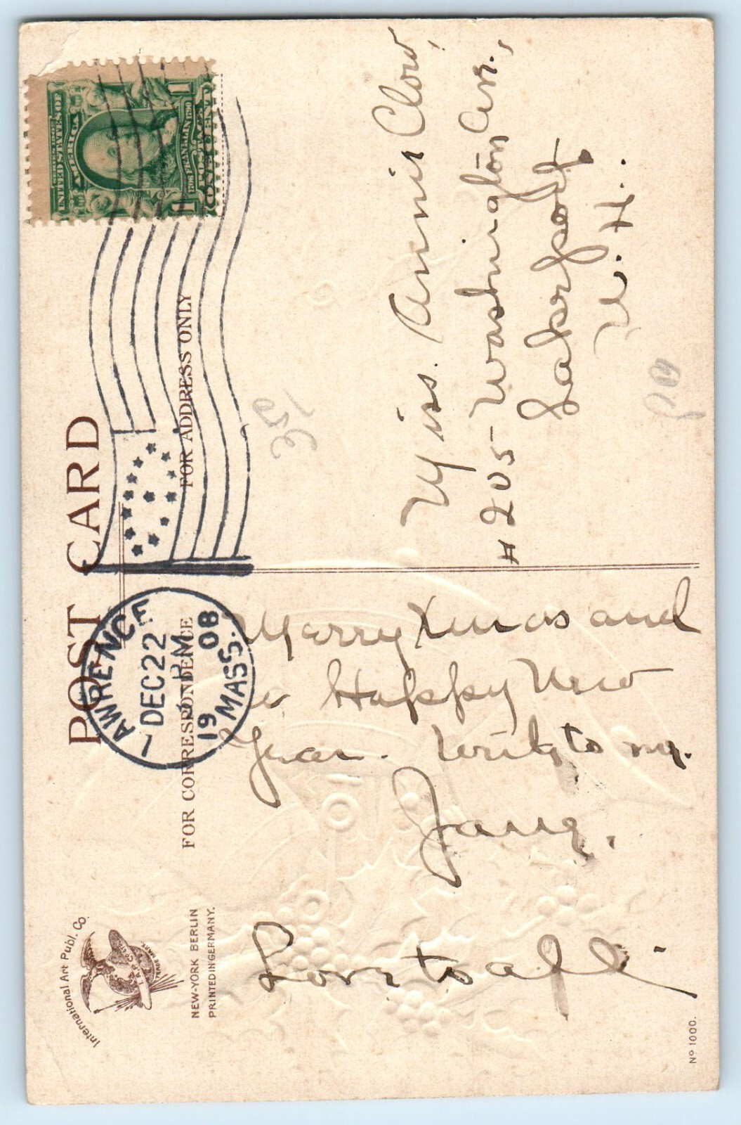 Christmas Ringing Bells Berries Ellen Clapsaddle Signed Lawrence MA Postcard