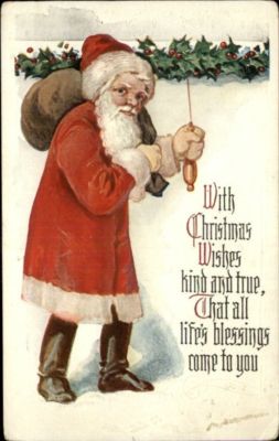 CHRISTMAS Santa and Holly c1910 Embossed Postcard