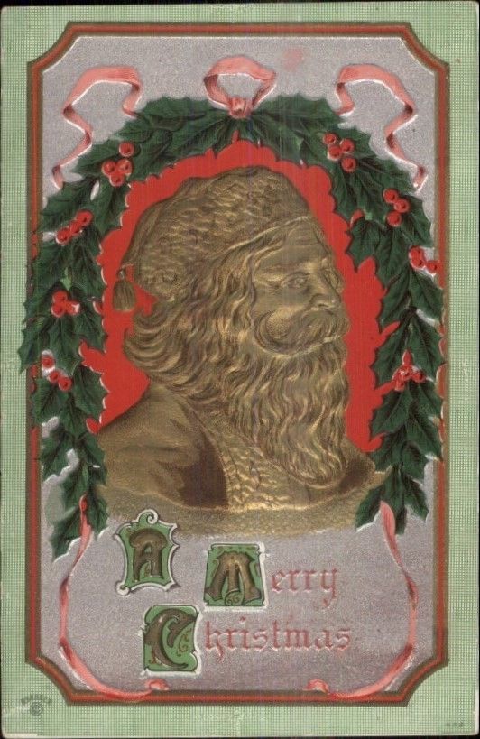 Christmas - Santa Claus All Gold Face Embossed c1910 Postcard