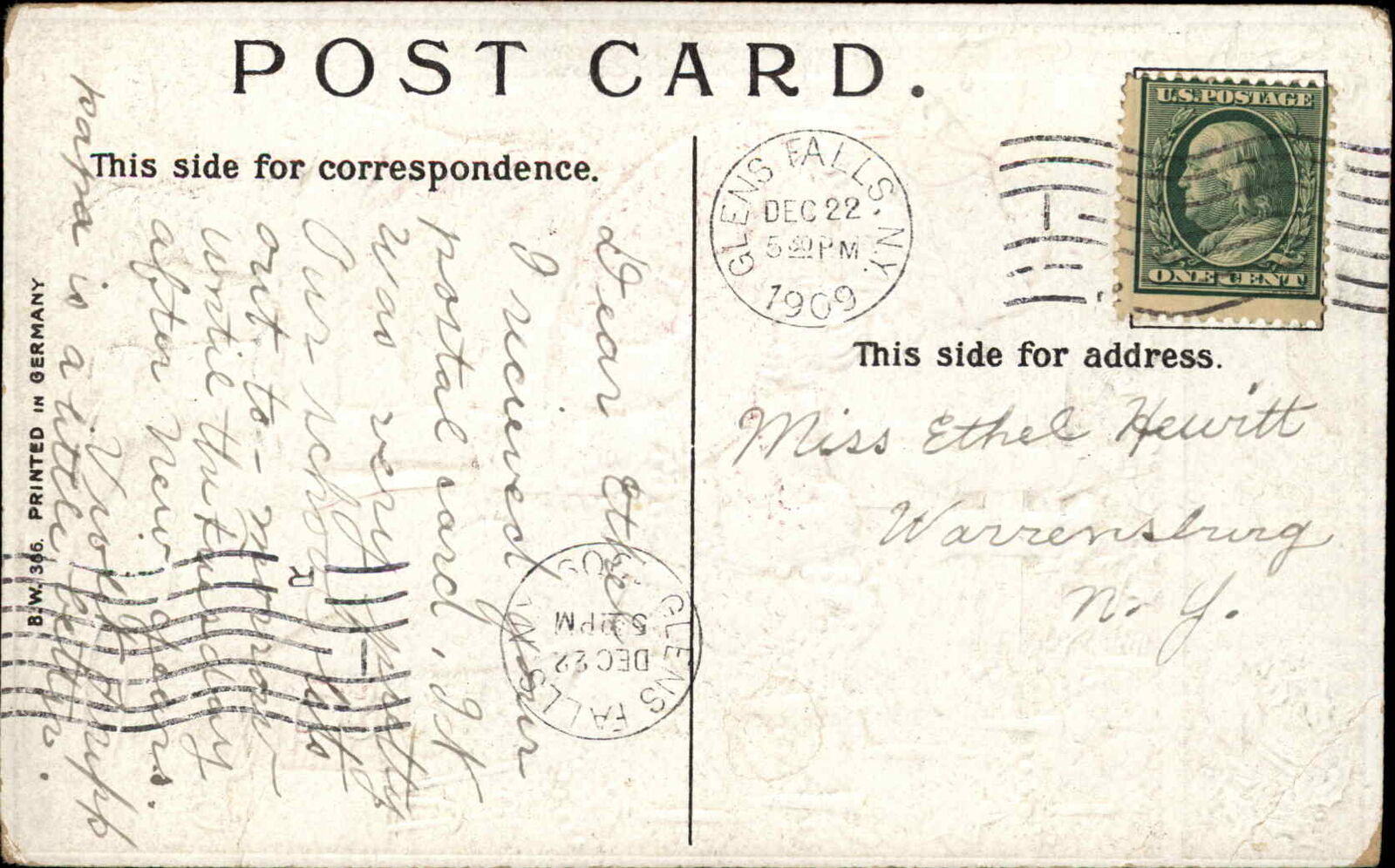 VINTAGE POSTCARD -CONDITION:VG/some corner wear and cancellation ink - SEE SCANS FOR DETAILED CONDITION. Standard Size 3.5x5.5 Inches.