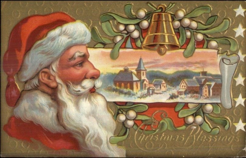 Christmas - Santa Claus Profile & Gold Background c1910 Postcard