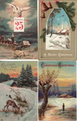 CHRISTMAS SNOW SCENES 4 vintage postcards