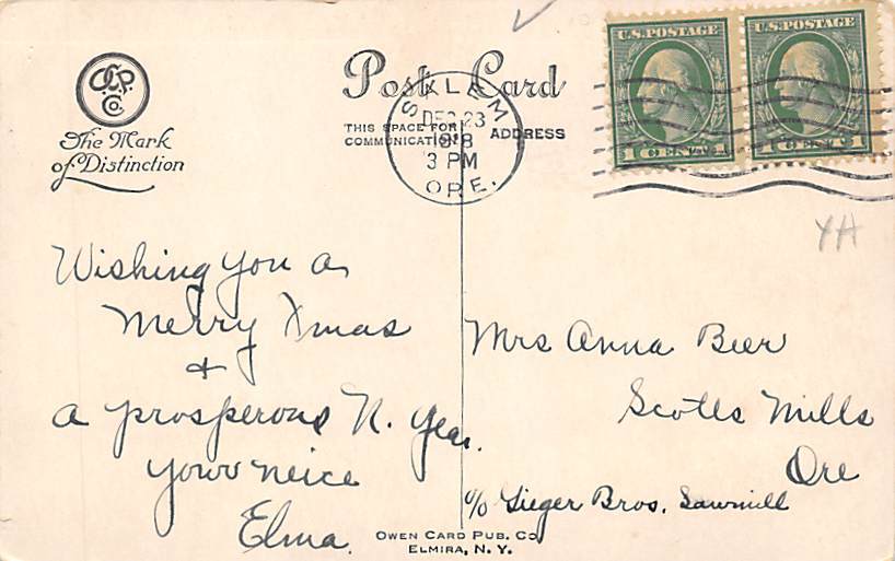 Christmas Postcard View Images, Grade: 2 Size: Regular Size Postcard - approximately 3 1/2 inch x 5 1/2 inch (9 CM x 14 CM) Grading Scale: Grade 1 = Perfect corners Grade 2 = Very Minimal corner wear, no crease ... Read More