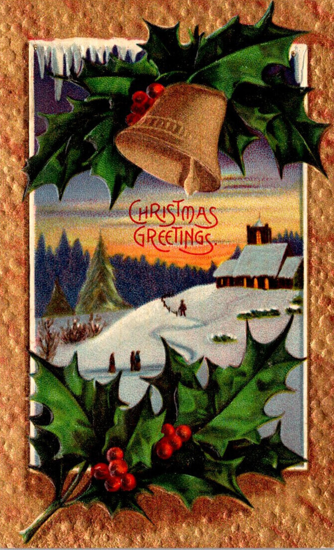 Christmas With Gold Bell and Holly