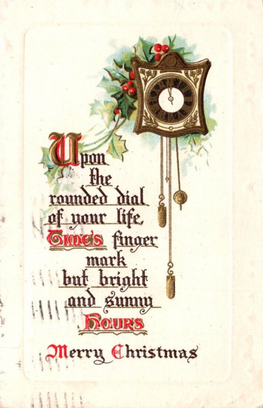 Christmas With Holly and Clock 1915