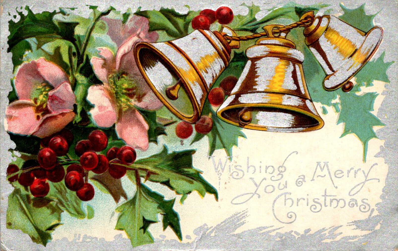 Christmas With Silver Bell and Holly 1909