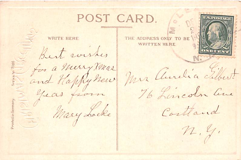 Christmas Postcard , Grade: 1, , Size: Regular size: Approx 3 1/2 X 5 1/2 inch (9 cm X 14 cm) Grading Scale: Grade 1 = Perfect corners Grade 2 = Very Minimal corner wear, no creases Grade 3 = Some corner wear, ... Read More