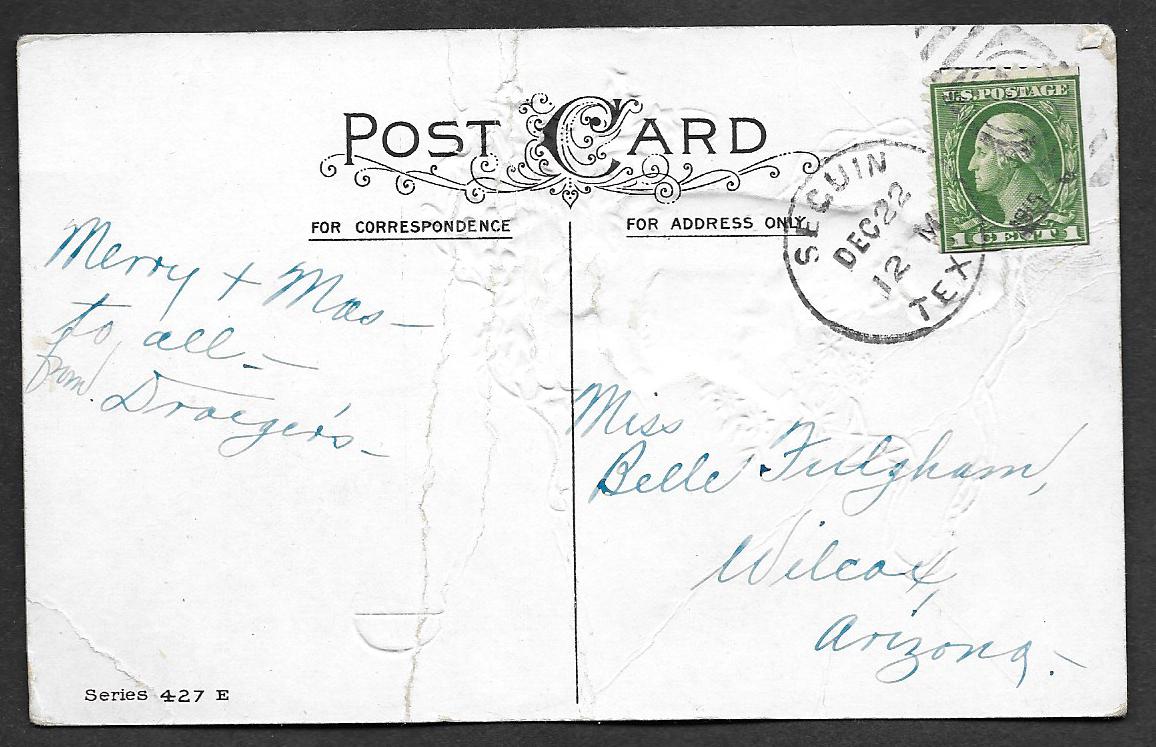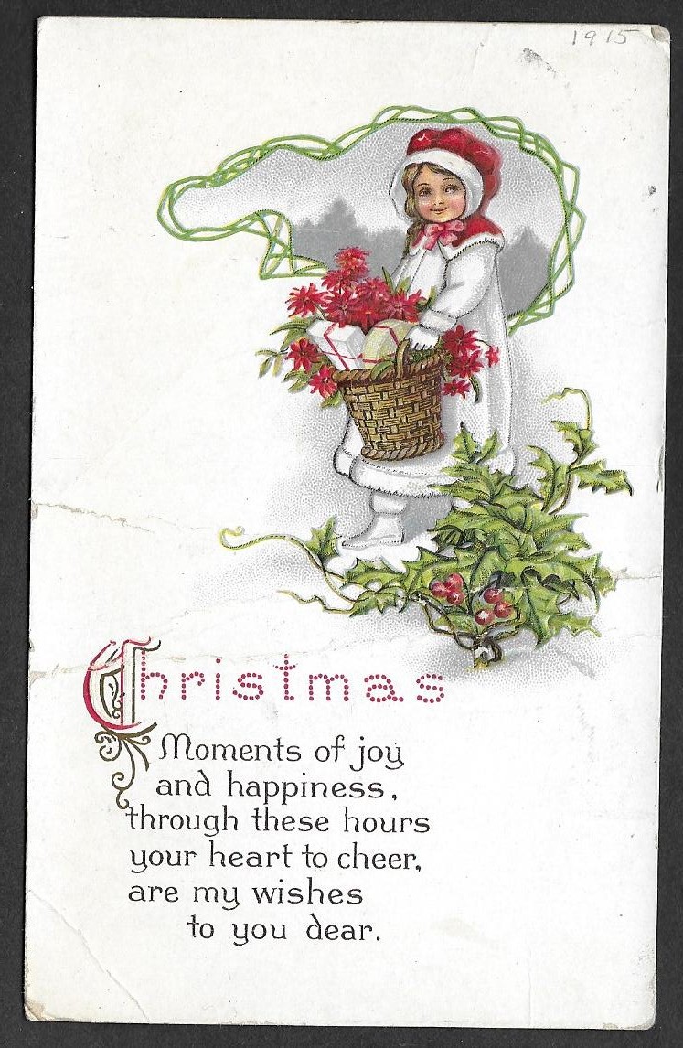 Used Christmas card from 1915 with heavy creases.Seller Information