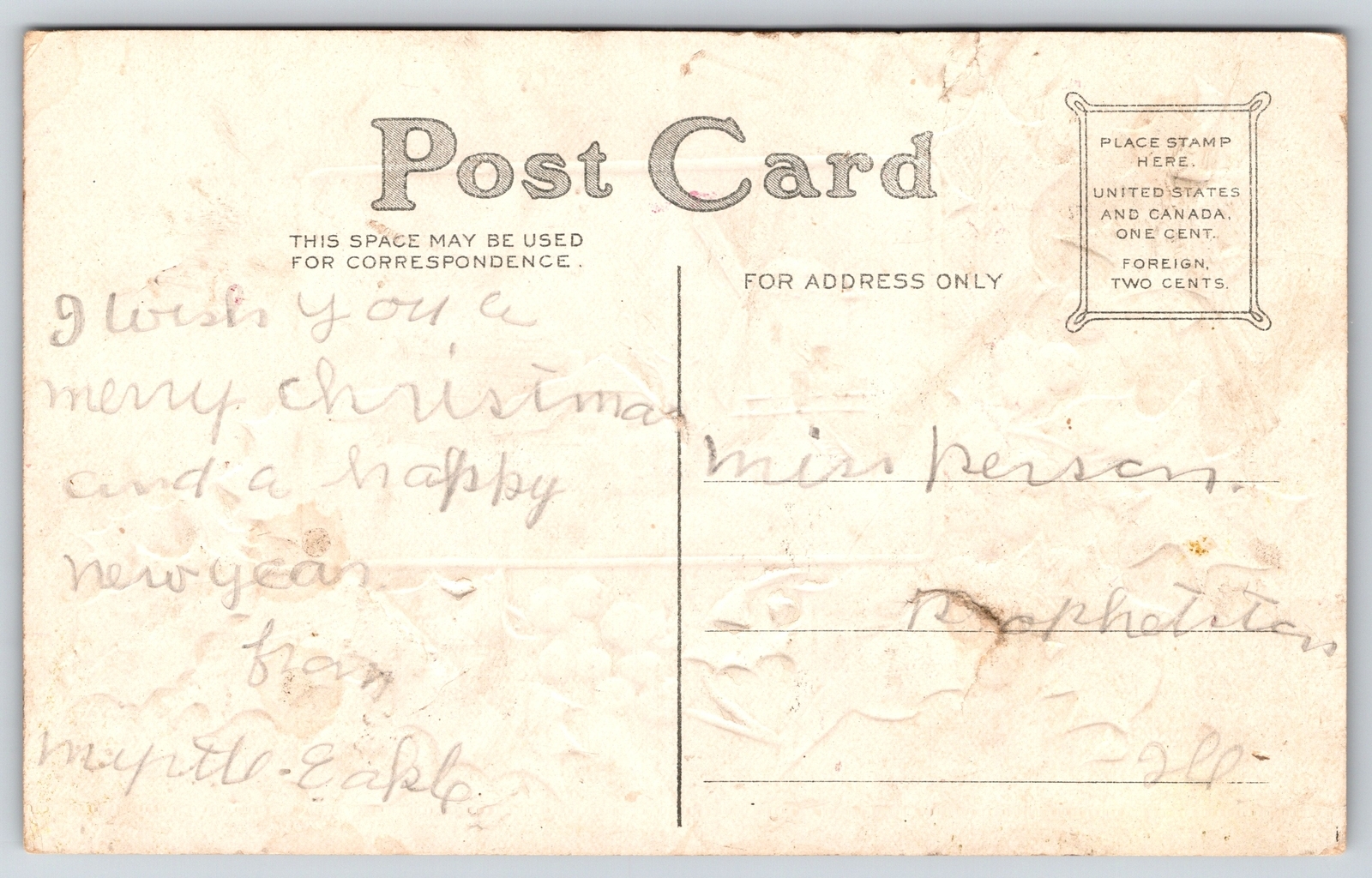 Christmas~Holly Windmill & Christmas Greeting~Vintage Postcard