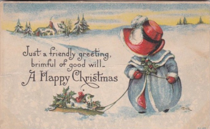 ChristmasYoung Girl Pulling Sleigh 1915