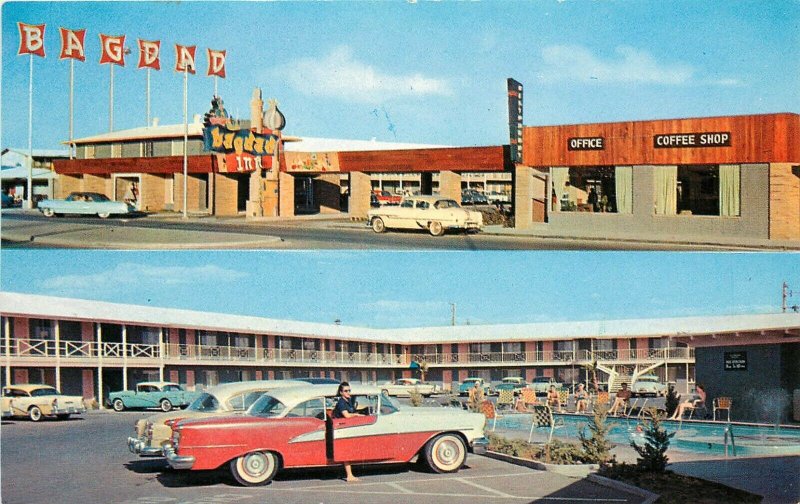 Chrome Postcard Bagdad Inn Motel Las Vegas Strip NV Cool 1950's Cars Unposted