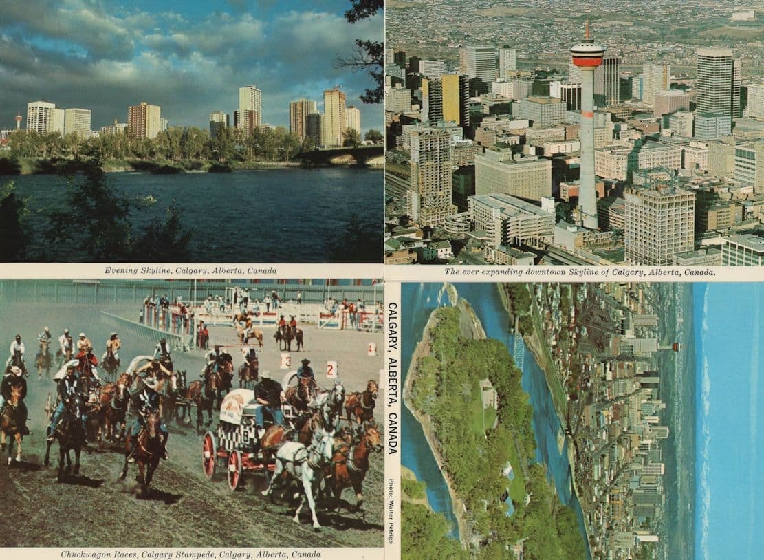 bg835 Four Calgary unique specialist postcards from the late 1970s to early 1980s all unused and mint.