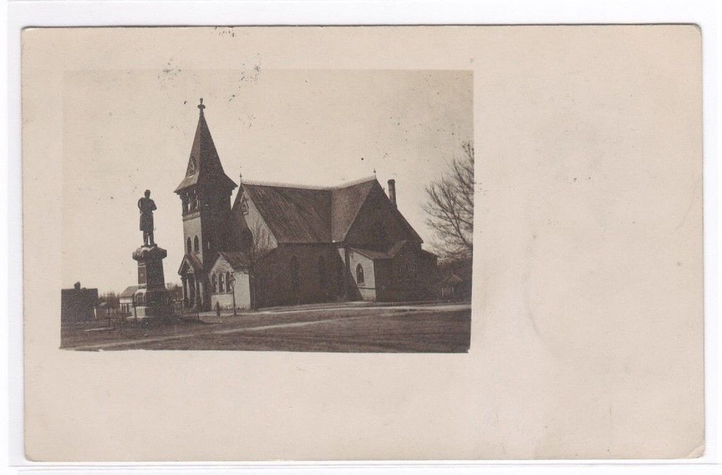 Church Soldier Monument Milbank SD 1908 RPPC postcard