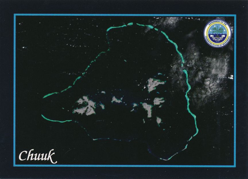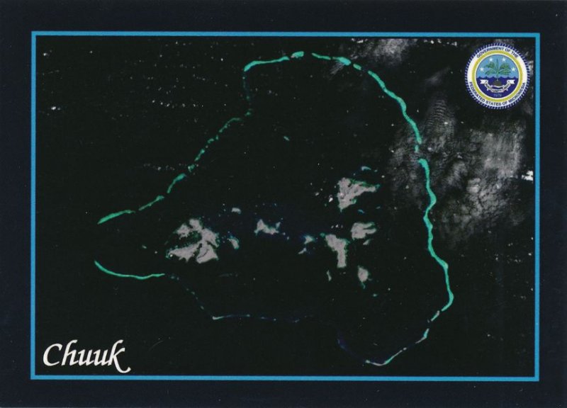 Chuuk Lagoon, Micronesia (Eastern Caroline Islands) - Satelite View. Continental sized chrome card. Excellent condition.