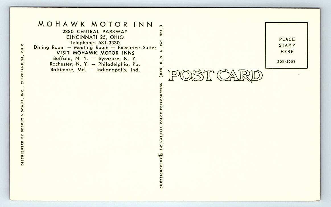 CINCINNATI, OH Ohio ~ MOHAWK MOTOR INN c1950s Roadside Postcard