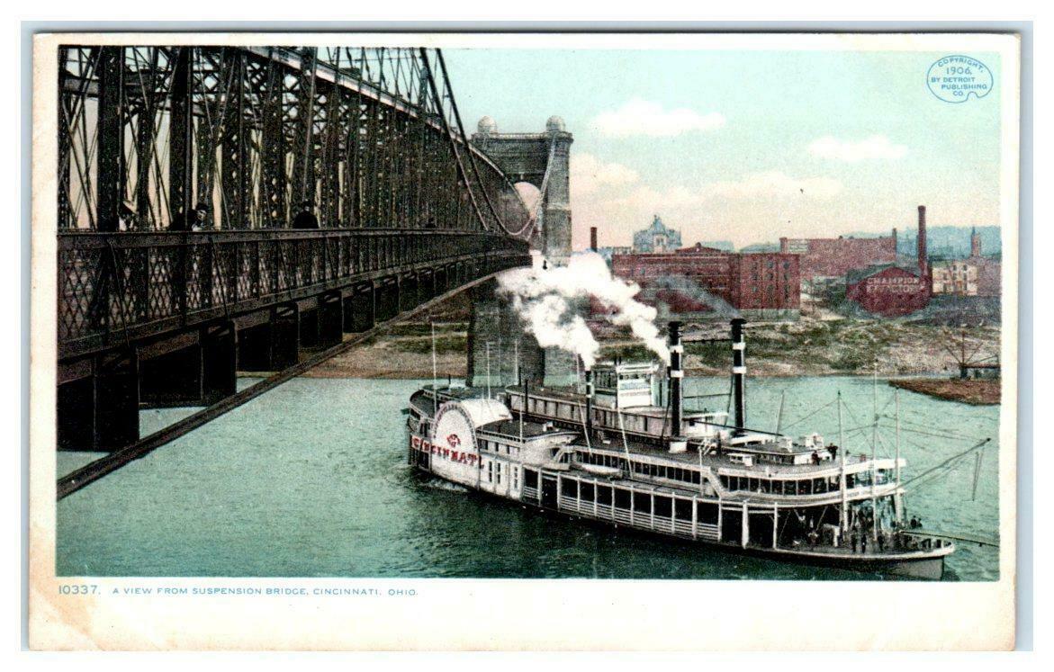 CINCINNATI, OH Ohio ~ Steamer "Cincinnati" & SUSPENSION BRIDGE c1910s Postcard