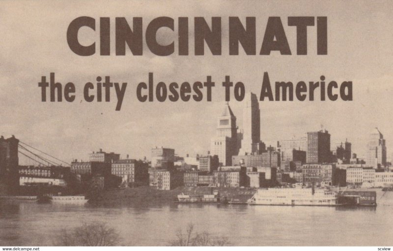 CINCINNATI, Ohio, 1900-10s; View from river side, Bridge :: Postcard, 3.5" by 5.5", Litho