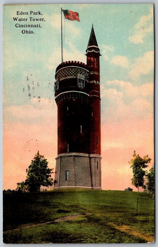 Cincinnati Ohio 1913 Postcard Eden Park Water Tower Flag