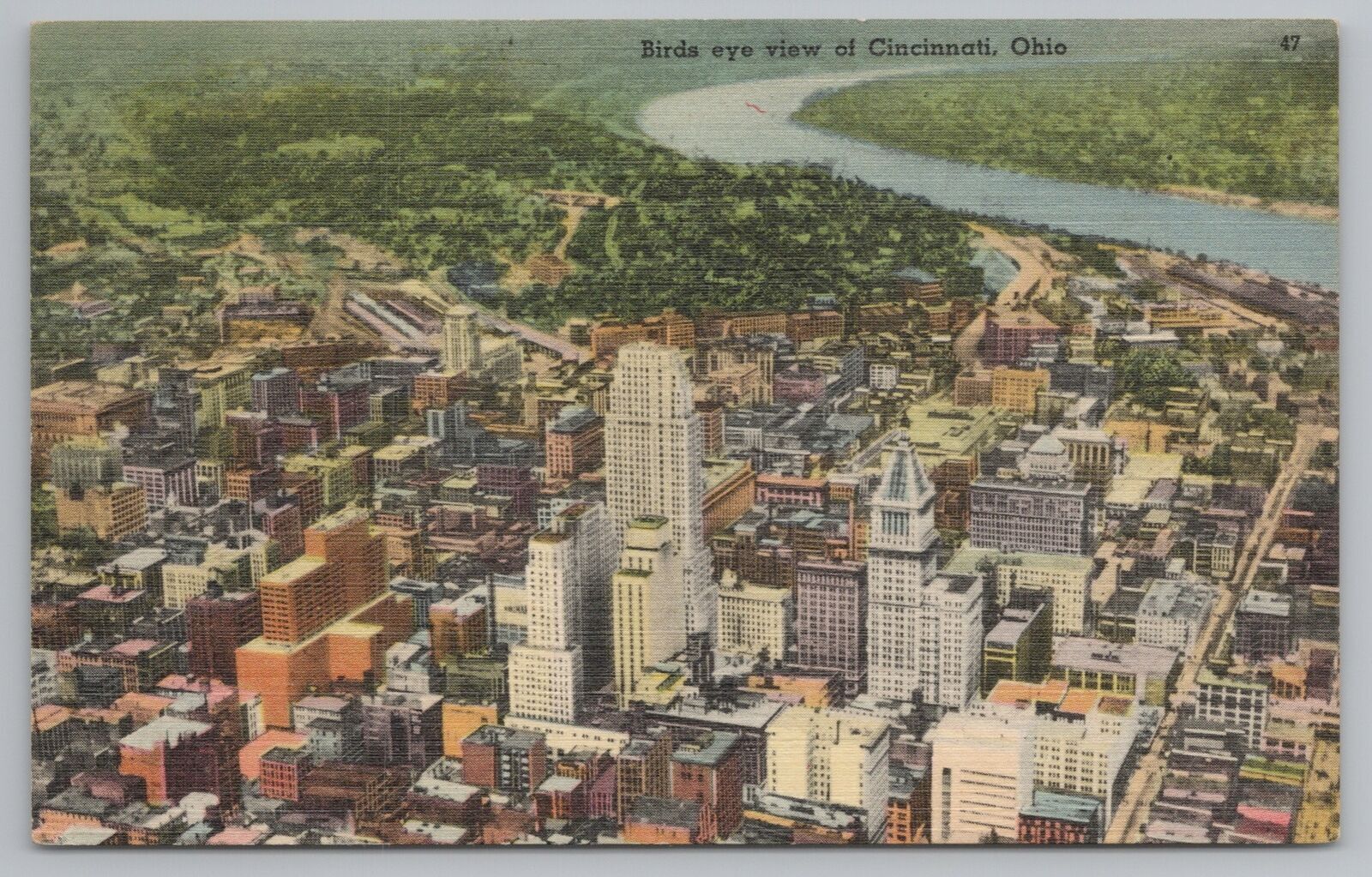 Cincinnati Ohio~Birds Eye View Overlooking City~Vintage Postcard