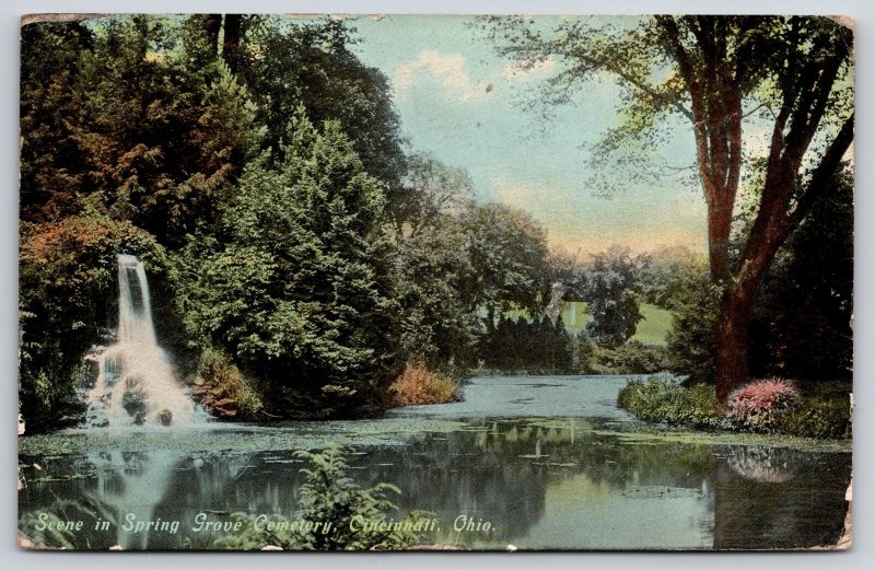 Cincinnati Ohio~Spring Grove Cemetery Scene~Waterfall~Reflection~1910 Postcard