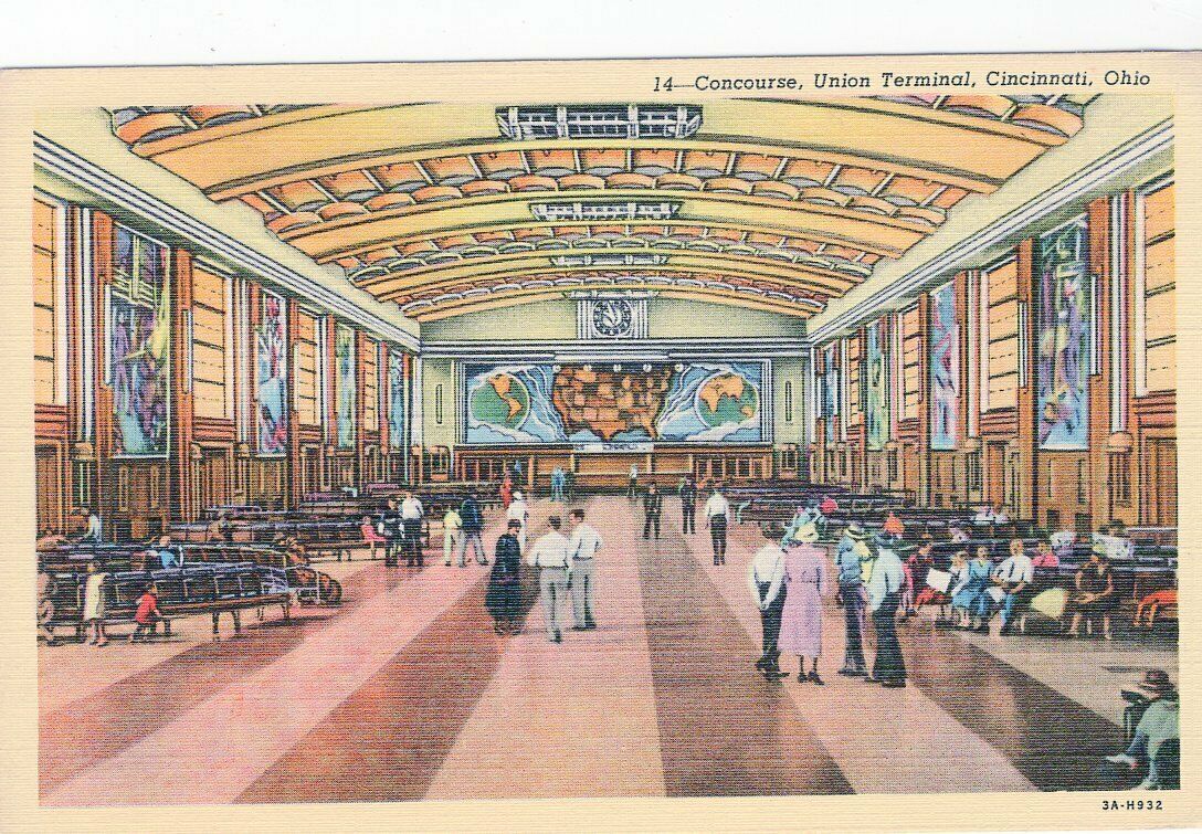 Cincinnati Union Terminal Concourse Ohio Vintage Postcard Art Deco Architecture