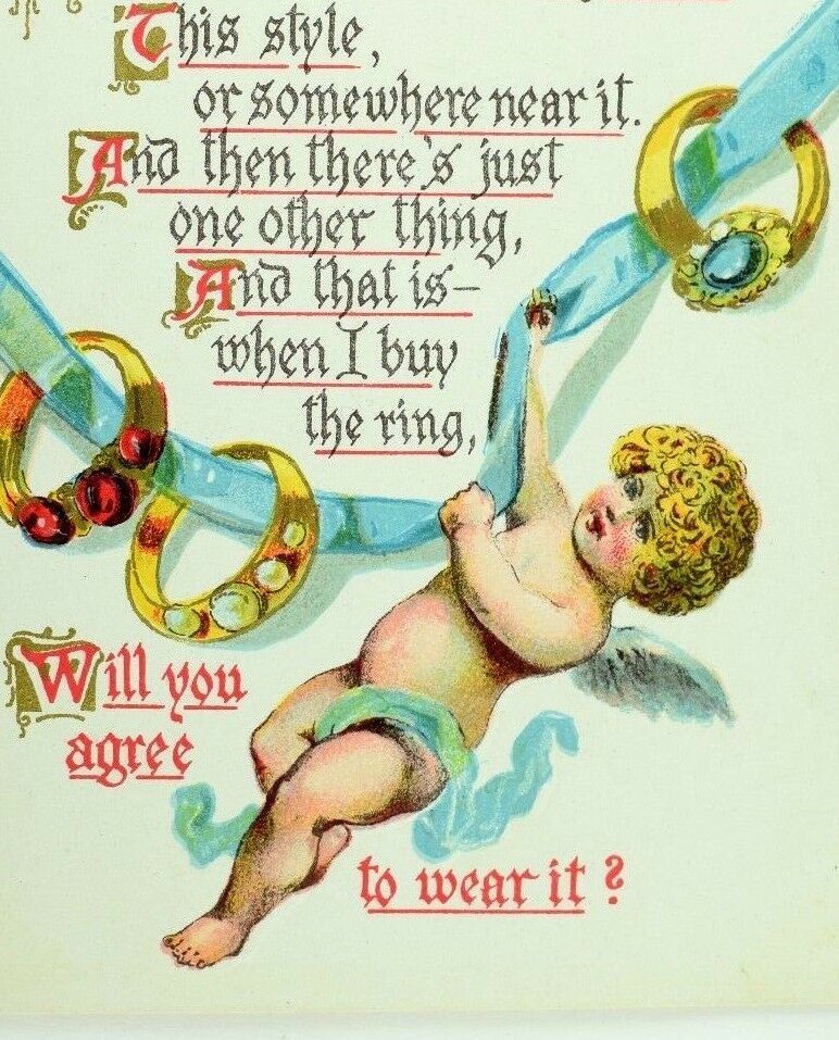 Circa 1910 Lovely Dan Cupid Embossed Proposal Offer Wedding Ring Postcard P36