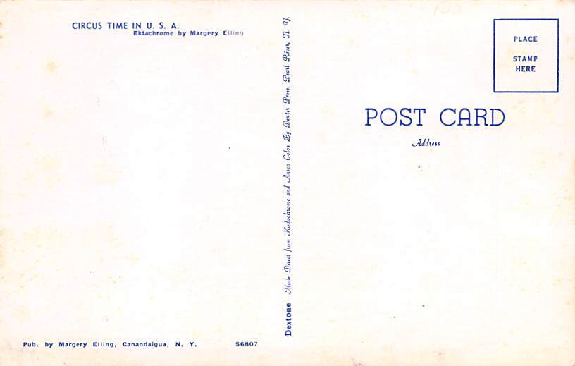 Circus Time USA Elephant Postcard Postal Date: {{Product Field 4 ( Postal Used, Unused)}} Grade: 1 Size: Regular Size Postcard - approximately 3 1/2 inch x 5 1/2 inch (9 CM x 14 CM) Grading Scale: Grade 1 = P ... Read More