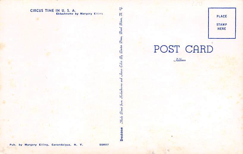 Circus Time USA Elephant Postcard Postal Date: {{Product Field 4 ( Postal Used, Unused)}} Grade: 1 Size: Regular Size Postcard - approximately 3 1/2 inch x 5 1/2 inch (9 CM x 14 CM) Grading Scale: Grade 1 = P ... Read More
