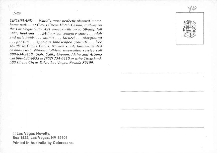 Circusland, Las Vegas, Nevada Postcard