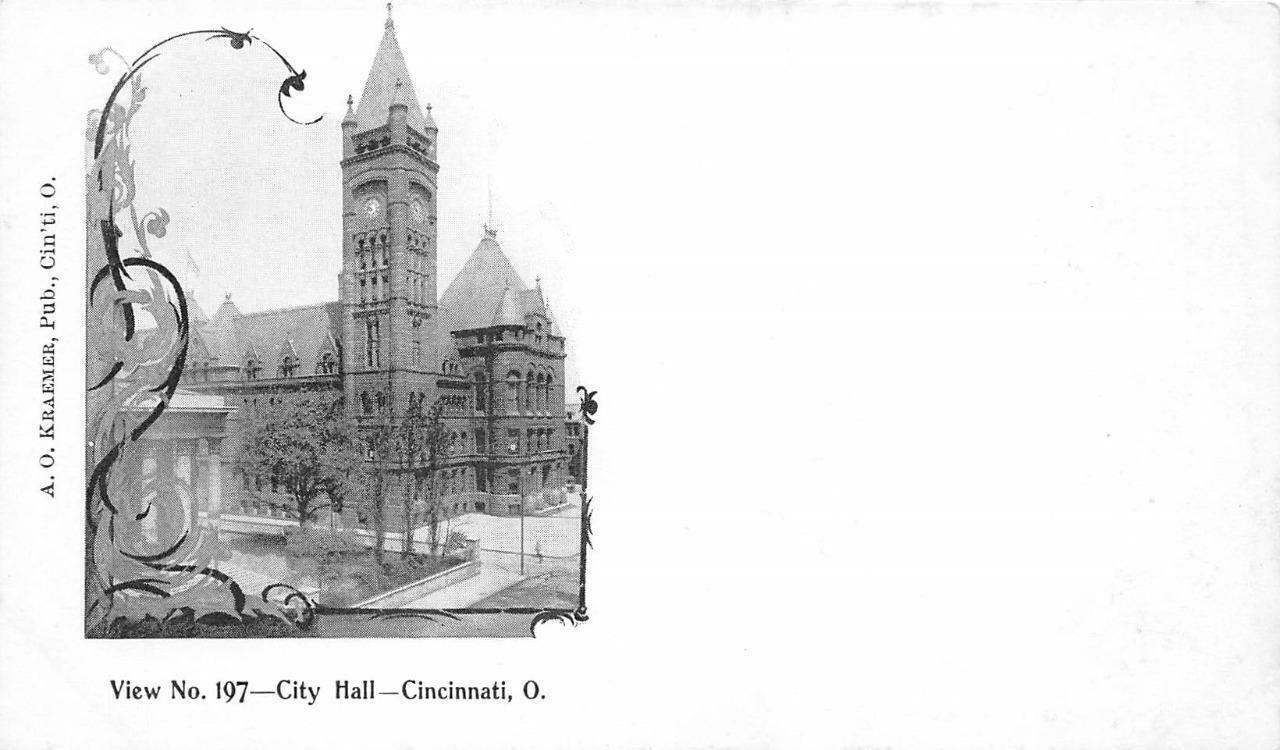 CITY HALL CINCINNATI OHIO PMC KRAEMER POSTCARD (c. 1900)