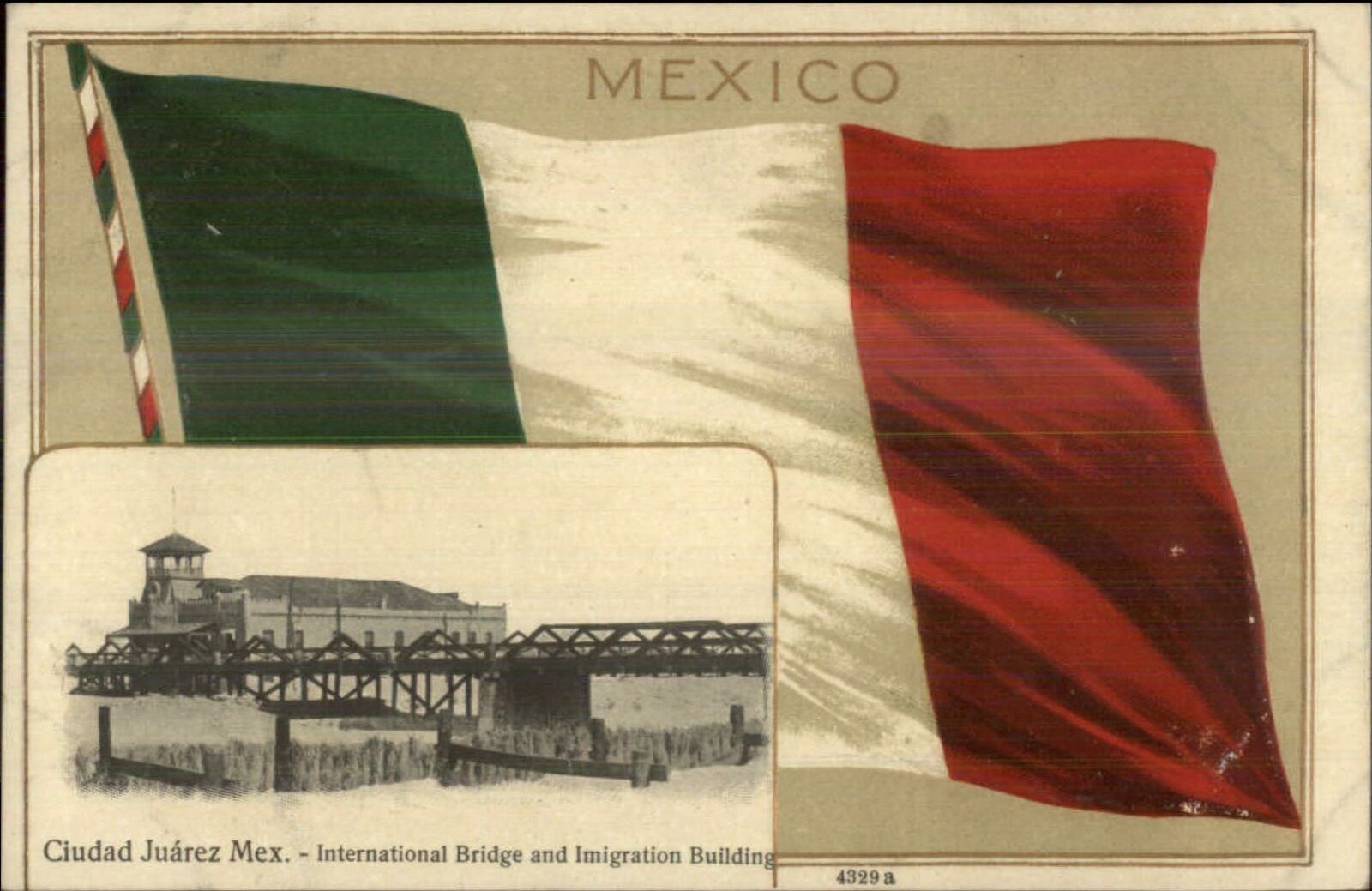 Ciudad Juarez Immigration Bldg & Bridge Mexican Flag Mexico c1910 Postcard
