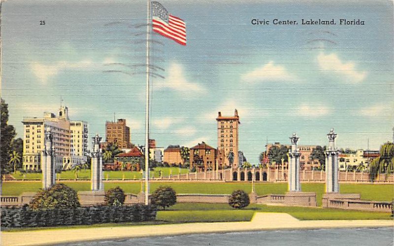 Civic Center Flag Pole Lakeland FL Postcard - 1939