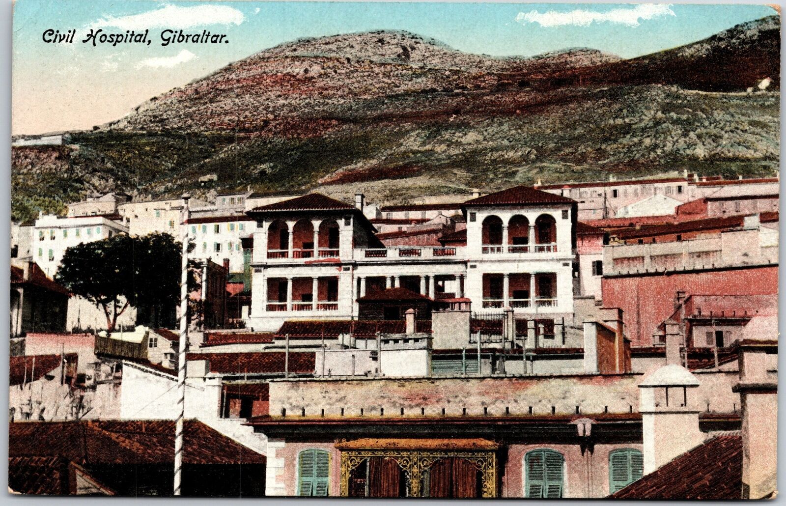 Civil Hospital Gibraltar Building Structure Mountain Scene Postcard