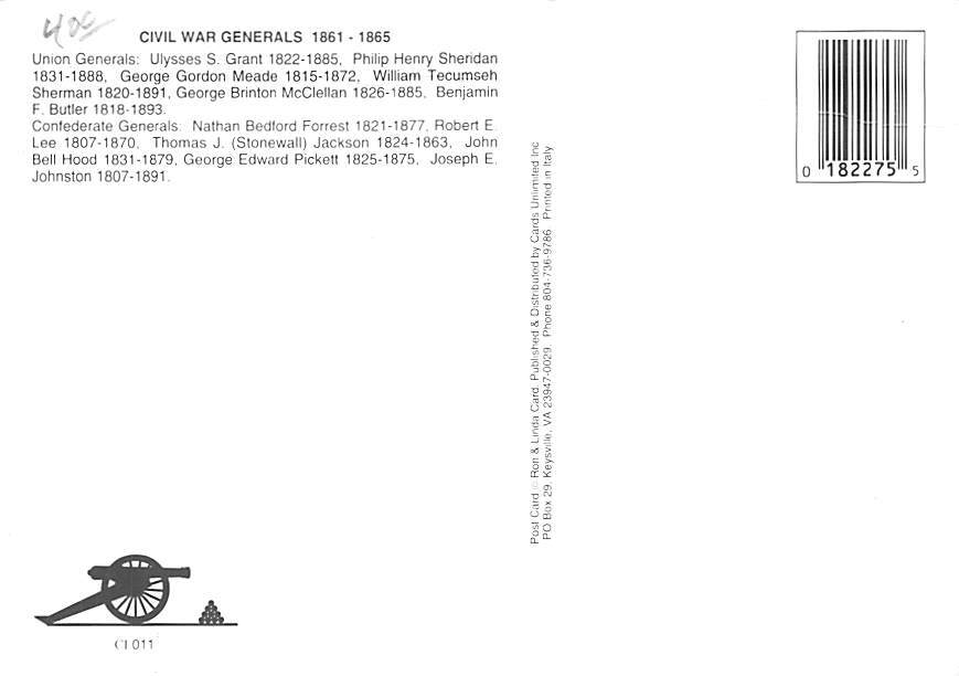 Civil War Generals, Picture Postcard - View Images