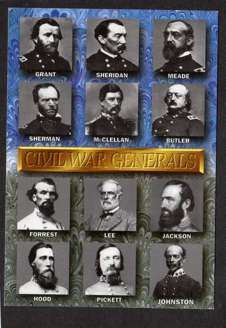 Civil War Generals Union Confederate General Grant Lee Pickett Jackson Postcard