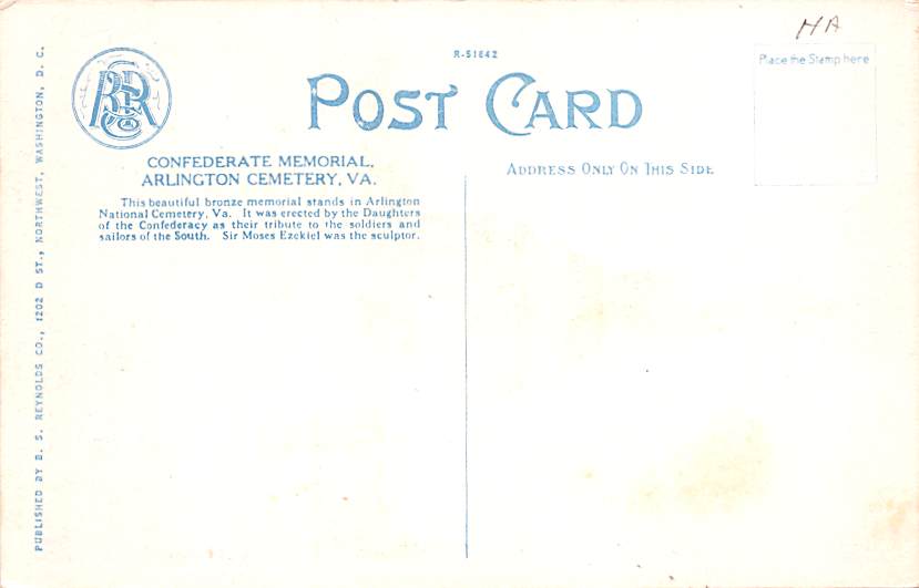 Confederate Memorial, Arlington Cemetery, VA Civil War Postcard