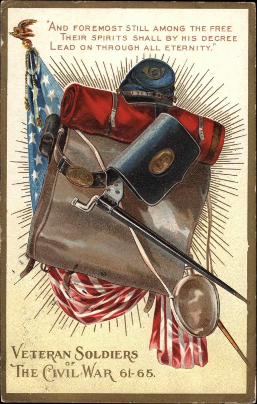 Civil War Union Soldier's Pack Sword Canteen Hat c1910 Postcard