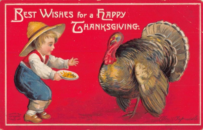 Clapsaddle Boy feeding turkey Thanksgiving postcard clap19