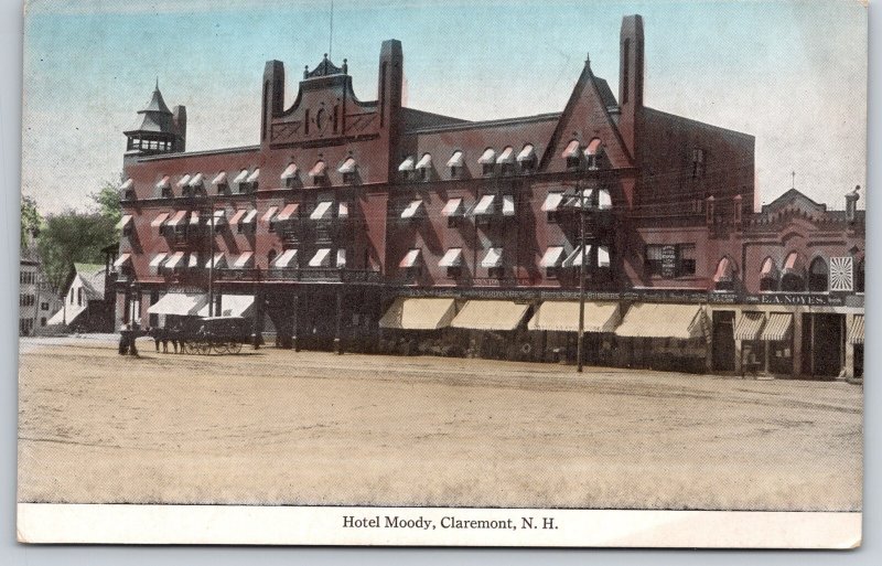 Claremont NH~Hotel Moody Block~Hardware~Boots~Tailor~EA Noyes Store~c1910 PC