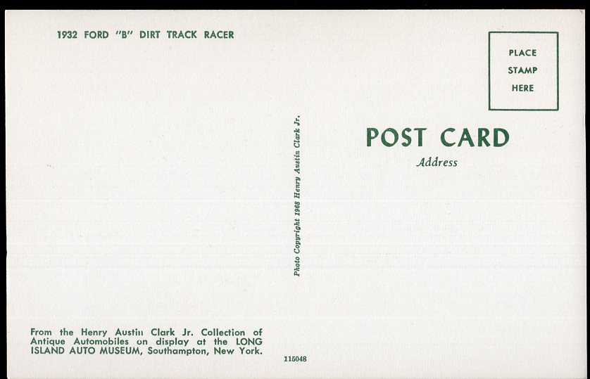Classic Car Postcard 1932 FORD "B" Dirt Track Racer