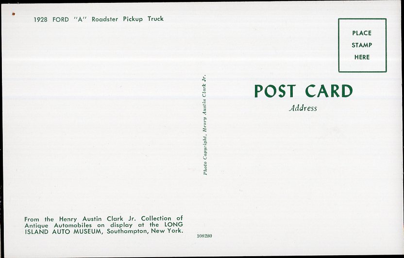 Classic Truck Postcard 1928 FORD Model "A" Roadster Pickup - Chrome