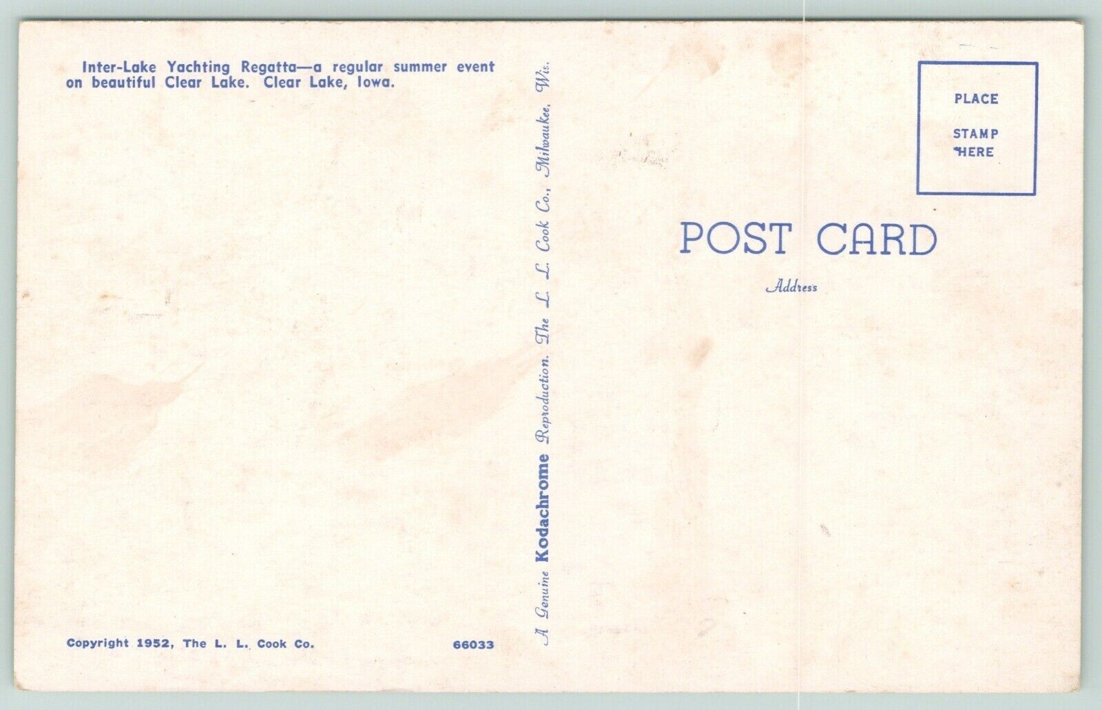 Clear Lake Iowa~Yachting Regatta~Summer Sporting Event~Inter Lake~Postcard