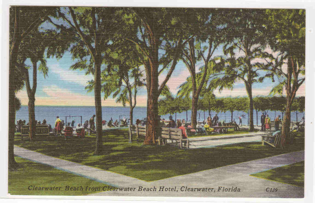 Clearwater Beach Trees Clearwater Florida linen postcard