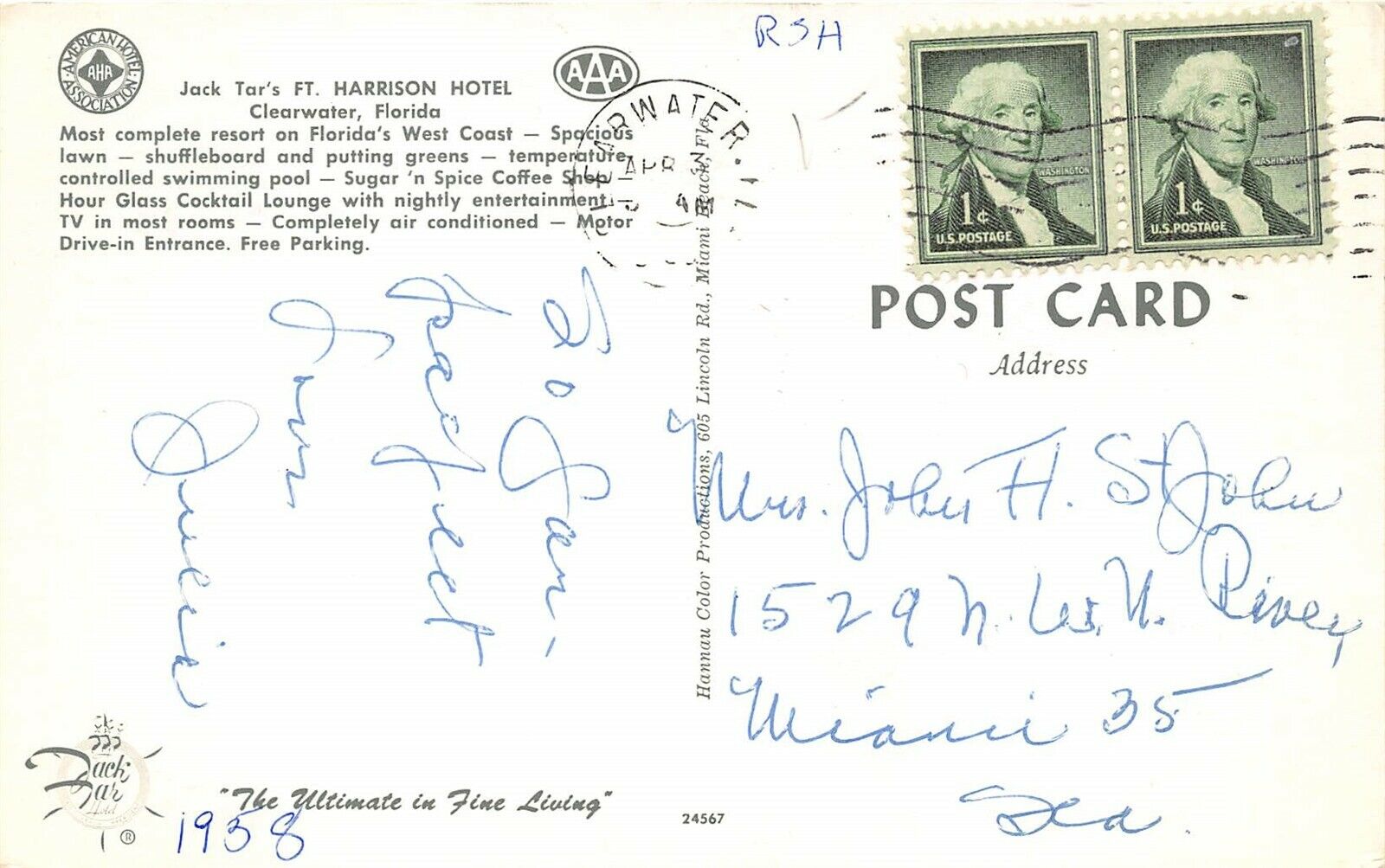Clearwater Florida 1958 Postcard Jack Tar's Ft. Harrison Hotel